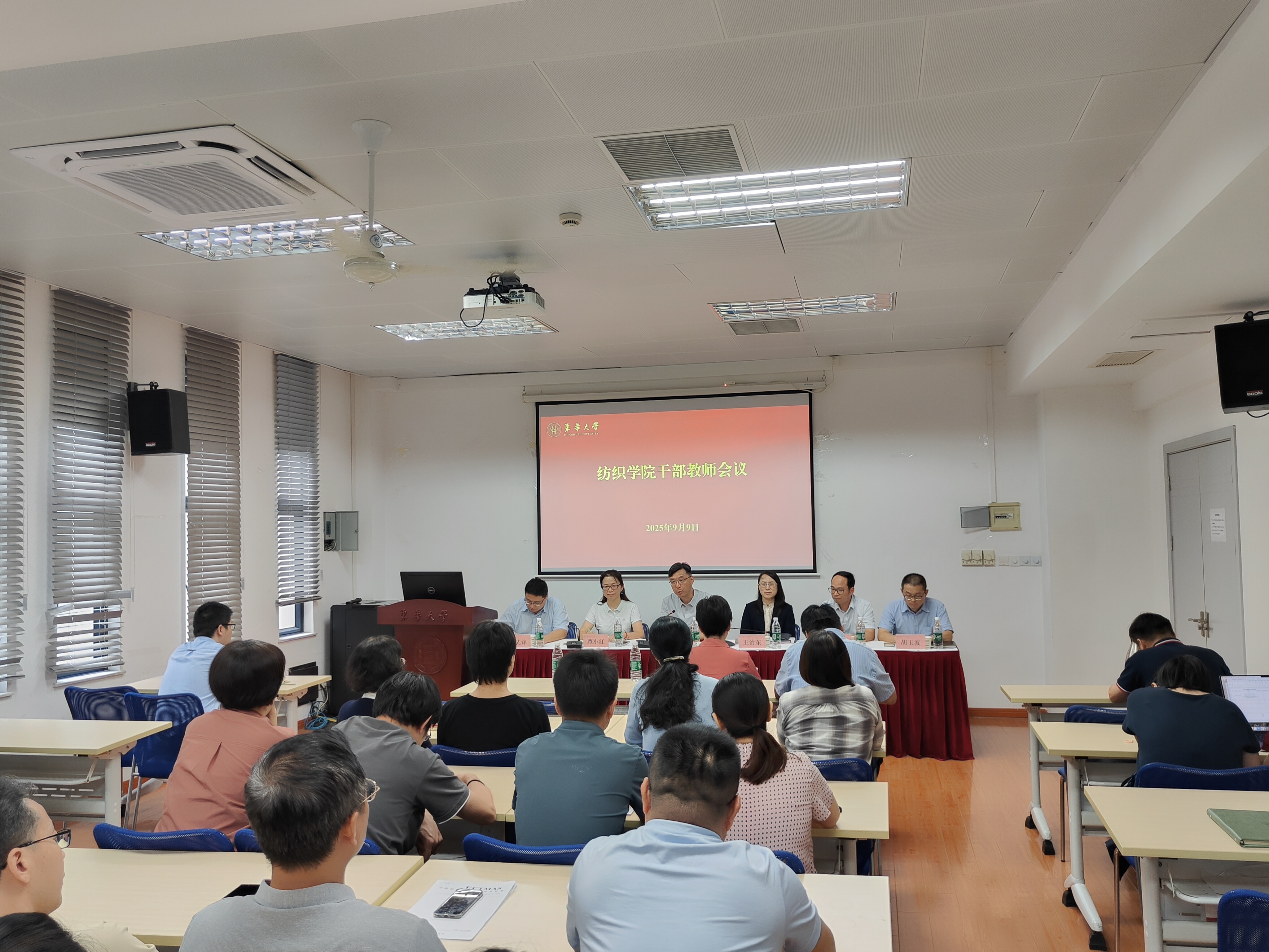 9月9日,纺织学院召开干部教师会议。校党委书记刘承功、党委副书记王治东出席会议,党委组织部副部长胡玉波主持会议。党委办公室负责人、学院领导班子成员和全体教职工与会。